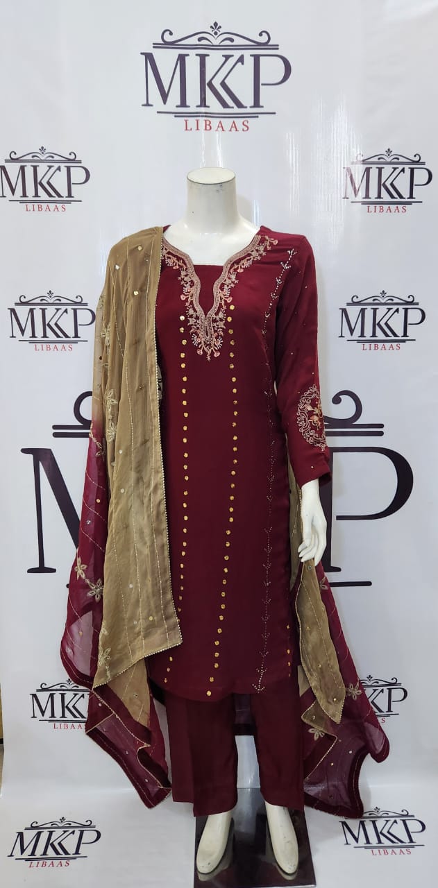 - Embroidered And Mukesh Chiffon Sleeves